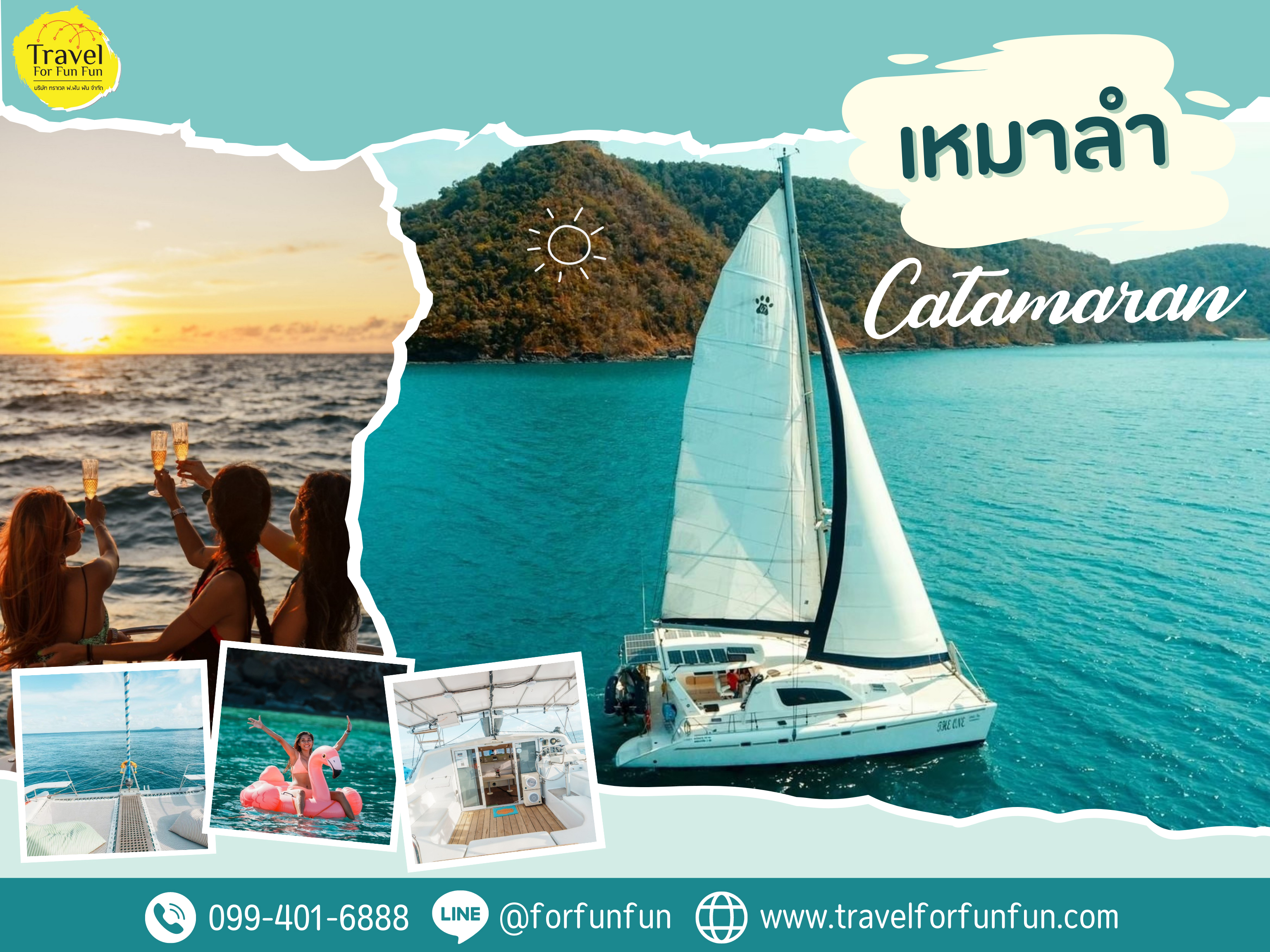 ล่องเรือสุดหรู เกาะราชา เกาะเฮ ชมบรรยากาศของท้องทะเลอันดามัน จิบเครื่องดื่มชมพระอาทิตย์ตก ล่องเรือ Catamaran ราคาพิเศษ ท่านละ 1490 บาท
