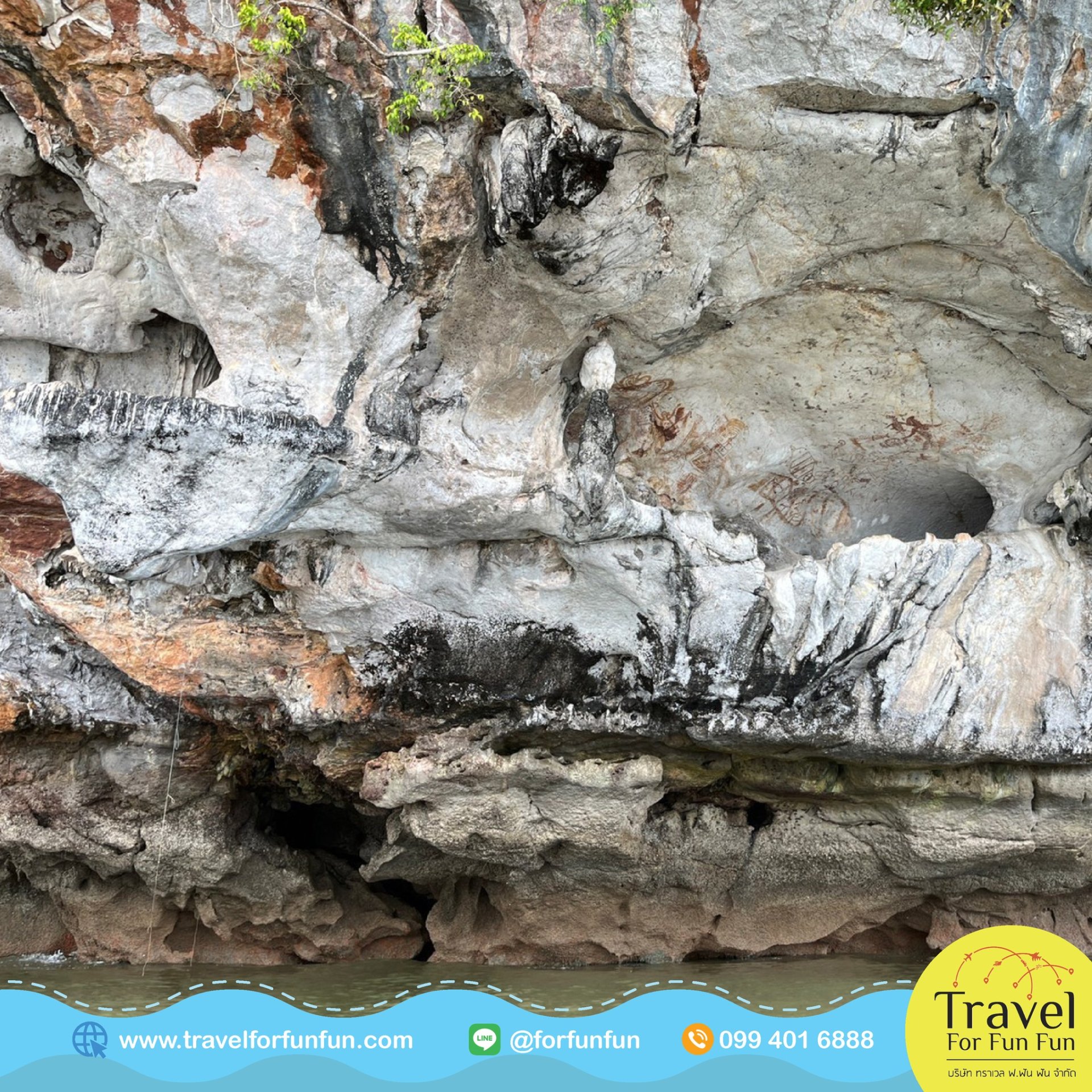 เขาเขียน เป็นทางผ่านที่จะไปยังเกาะปันหยี ใต้ผนังเขาลูกนี้มีรูปเขียนเป็นรูปสัตว์ชนิดต่าง ๆ กรมศิลปากรเคยมา ทำการศึกษาแล้ว ปรากฏว่ามีอายุไม่ต่ำกว่า 3,000 ปี สันนิษฐานว่าเป็นภาพวาดโดยนักเดินเรือ สมัยโบราณ ที่แวะมาจอดพักหลบมรสุม