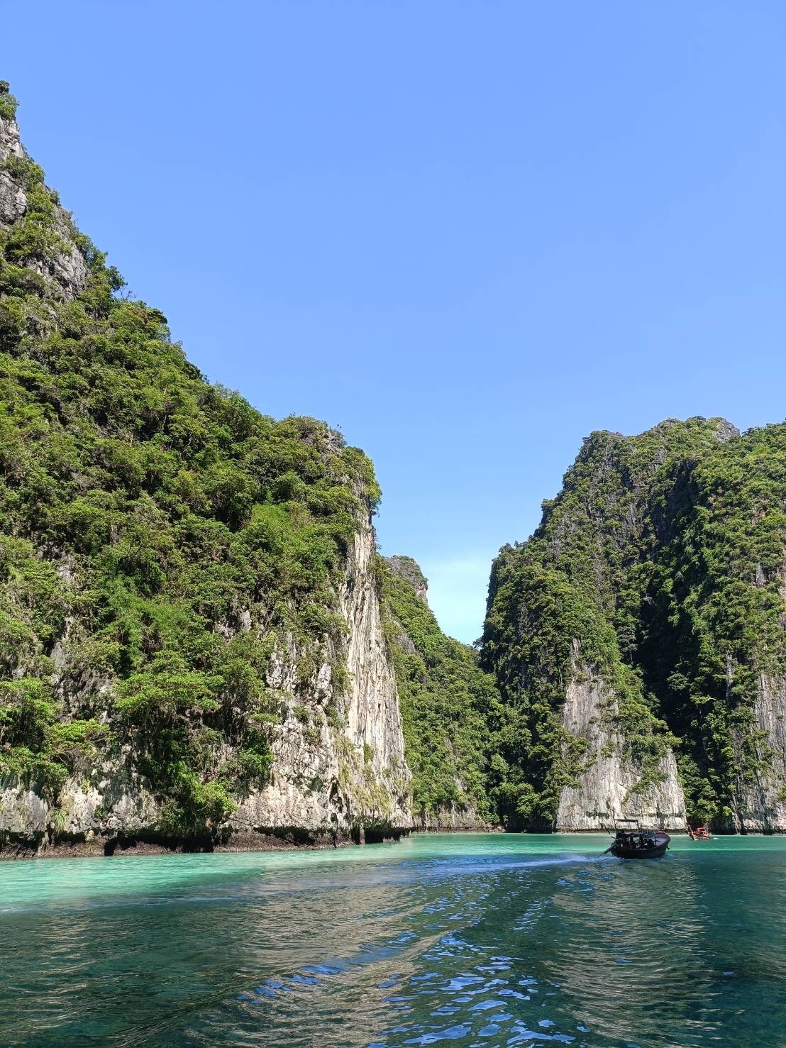 อีกจุดในหนังเรื่อง เดอะ บีช ที่สวยมากๆ อ่าวมาหยา หน้าหาดทางเจ้าหน้าที่จะไม่อนุญาติให้ลงเล่นน้ำนะคะ ลงน้ำได้ไม่เลยเข่าค่ะ ถ่ายภาพสวยๆ กับหาดทรายขาว น้ำใสแจ๋ว ดีงามมากๆ ถ้าโชคดีจะเจอฝูงปลาฉลามครีบดำว่ายเล่นอยู่ในอ่าวด้วยนะคะ